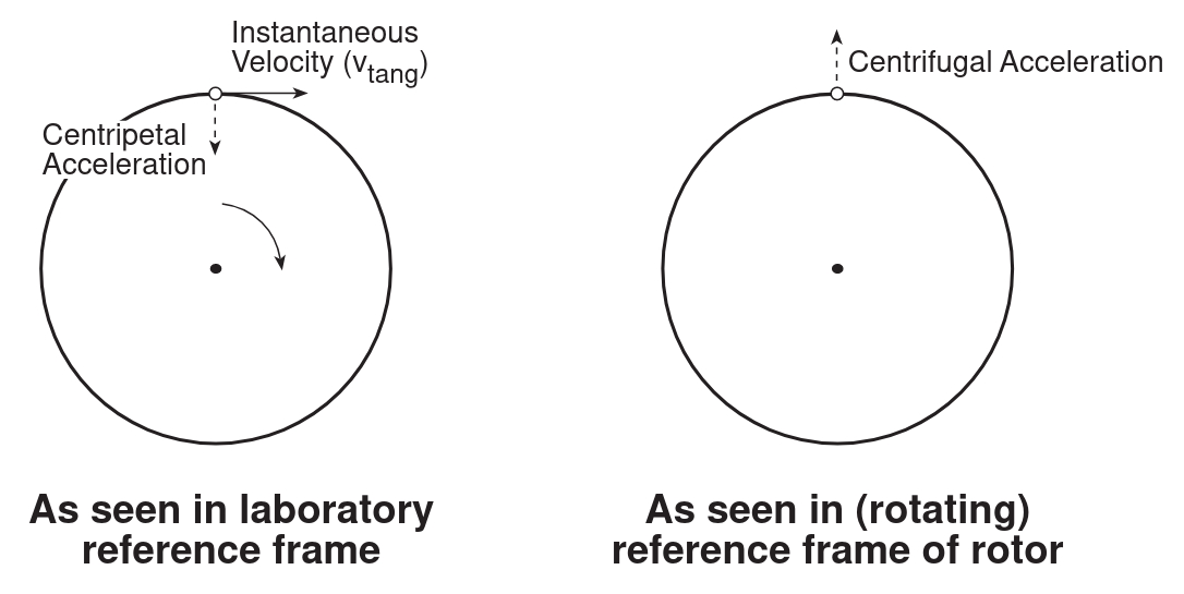 DIFFERENCE BETWEEN CENTRIFUGAL AND CENTRIPETAL: Centrifugal: in the rotating reference frame of the rotor.