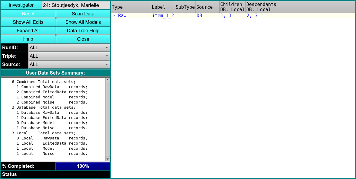 \(\textbf{Scan Data}\) Click this button to initate a full scan of your data in the database and on the local disk. You can re-initiate a scan after any series of processes on the data.