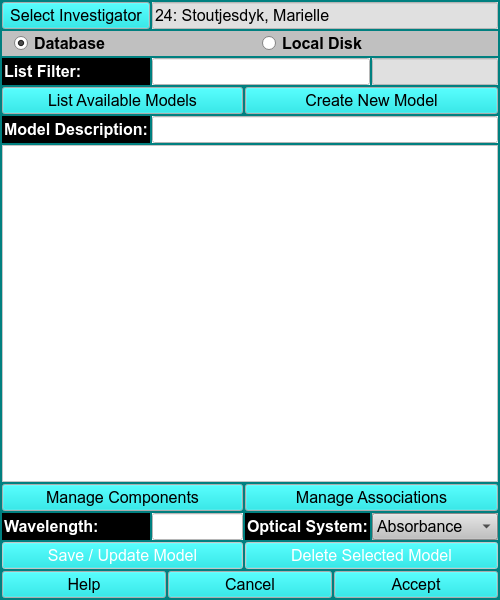 \(\textbf{List Avaliable Models}\) This buttom initiates population of the list of models from the designated source.
