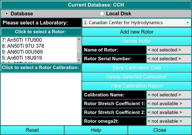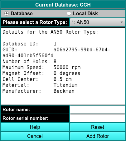 Using this window, you can manage rotor information. Make sure that you are in the correct database.