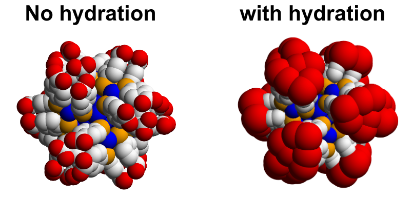 where \(v_{s}\) is the anhydrous solute volume, \(\delta\)_{w} is the number of waters in the hydration layer, \(v_{w}\) is the PSV of the water in the hydration later, and \(v_{0}\) is the PSV of the water in the bulk.
