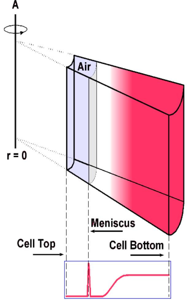 Sedimentation velocity (SV) experiments are performed at high speeds to overcome the effects of diffusion. In an SV experiment, the speed is set such that the back diffusion from the bottom of the cell is minimal compared to the rate of sedimentation, forming a moving boundary. The evolution of the shape of this boundary over time is representative of the composition, sedimentation, and diffusion properties of the sample. Molecular weight can also be analyzed in ideal cases.